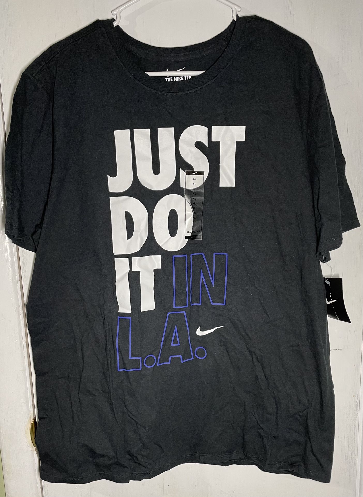 Brand new men’s Nike shirt with tag. It is on the wrinkle side (refer to photos) Size: XL The color of “IN L.A.” is purple outline.