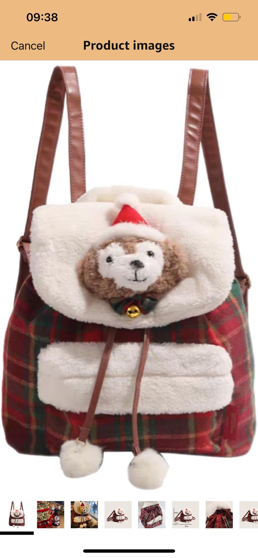 Christmas Plaid Fuzzy Backpack with Teddy Dog Charm - Festive Shoulder Bag, Pom-Pom Drawstring, Holiday Gift for Women