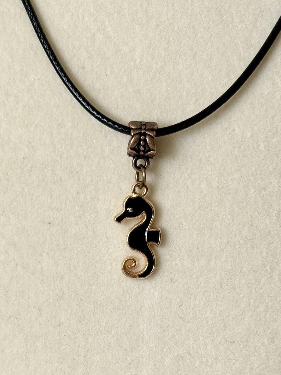 Black Seahorse Pendant Necklace with 18” Black Leather Cord. NWT. (417) #seahorse #pendantnecklace #jewelry #womensnecklace #womensjewelry