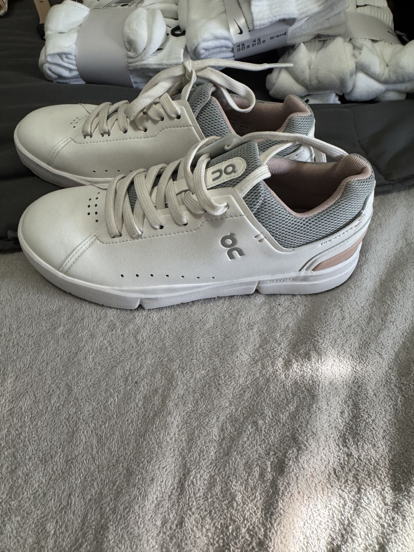 Brand new no box no tags Never worn On clouds sneakers white with light pink and light grey details Burbank pickup women’s 7 “the Roger” style retails $140