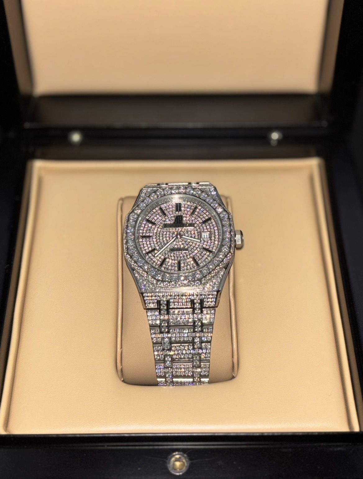 Shiny AP moissanite watch Pick up public place Lab tested stones Passes tester