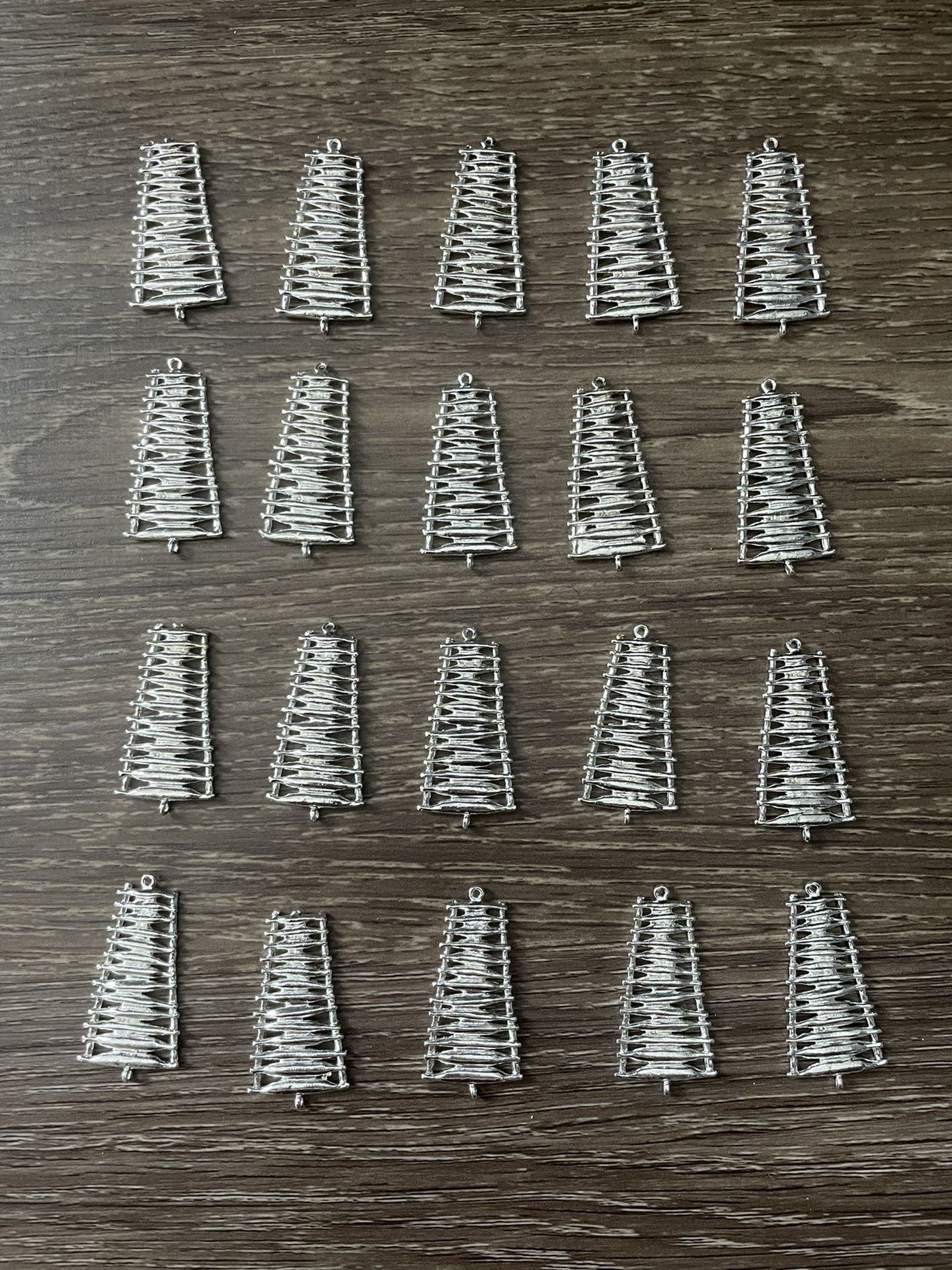 These silver colored Pendant/jewelry making pieces are for sale. There are 20 pieces. They have loops on the top and bottom for hooks and they are are about 1/2 inch wide and 1.25 inches in height. These are good supplies pieces for any jewelry makers. Requesting cash only and local buyer pick up if purchasing only please. Willing to ship items with buyer paid shipping. Thanks.