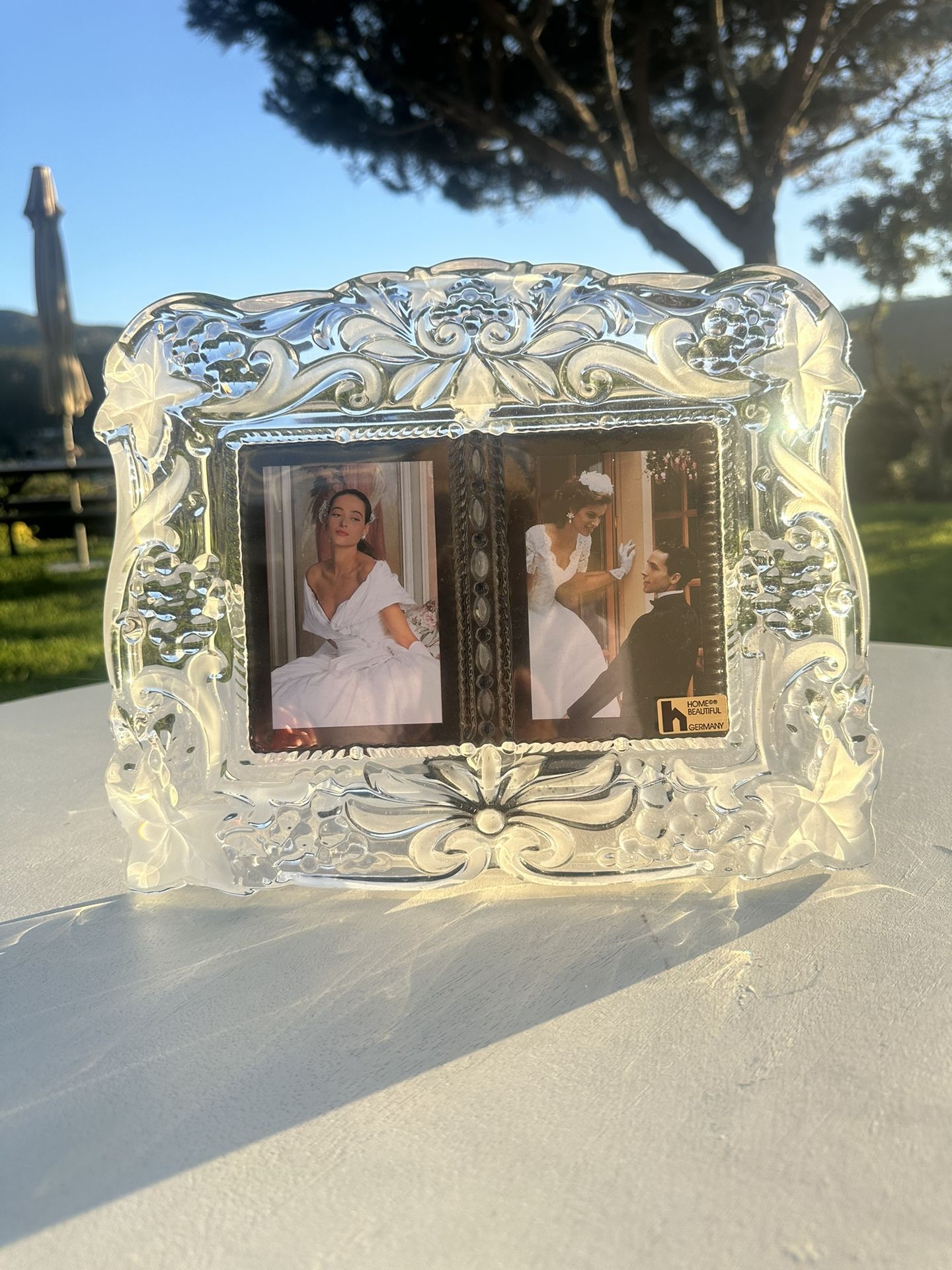 Vintage Ornate Crystal Glass Double Photo Frame Rectangle 3.5x5 Floral Antique