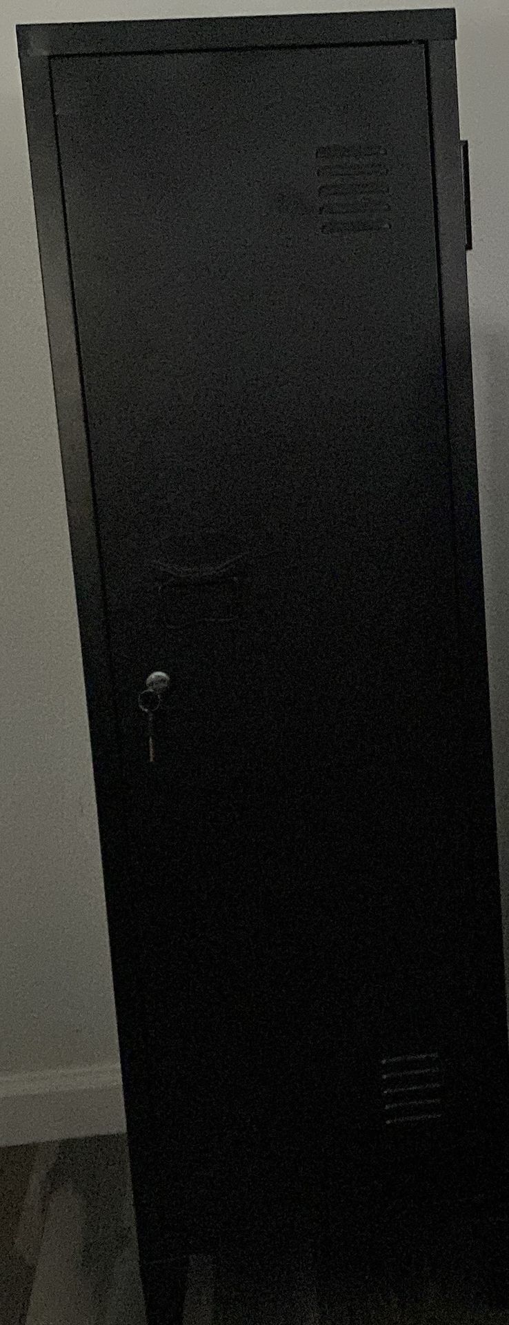 Brown metal locker 3 shelf’s with key 4ft 7in tall 1ft 15in wide x 1ft 15in