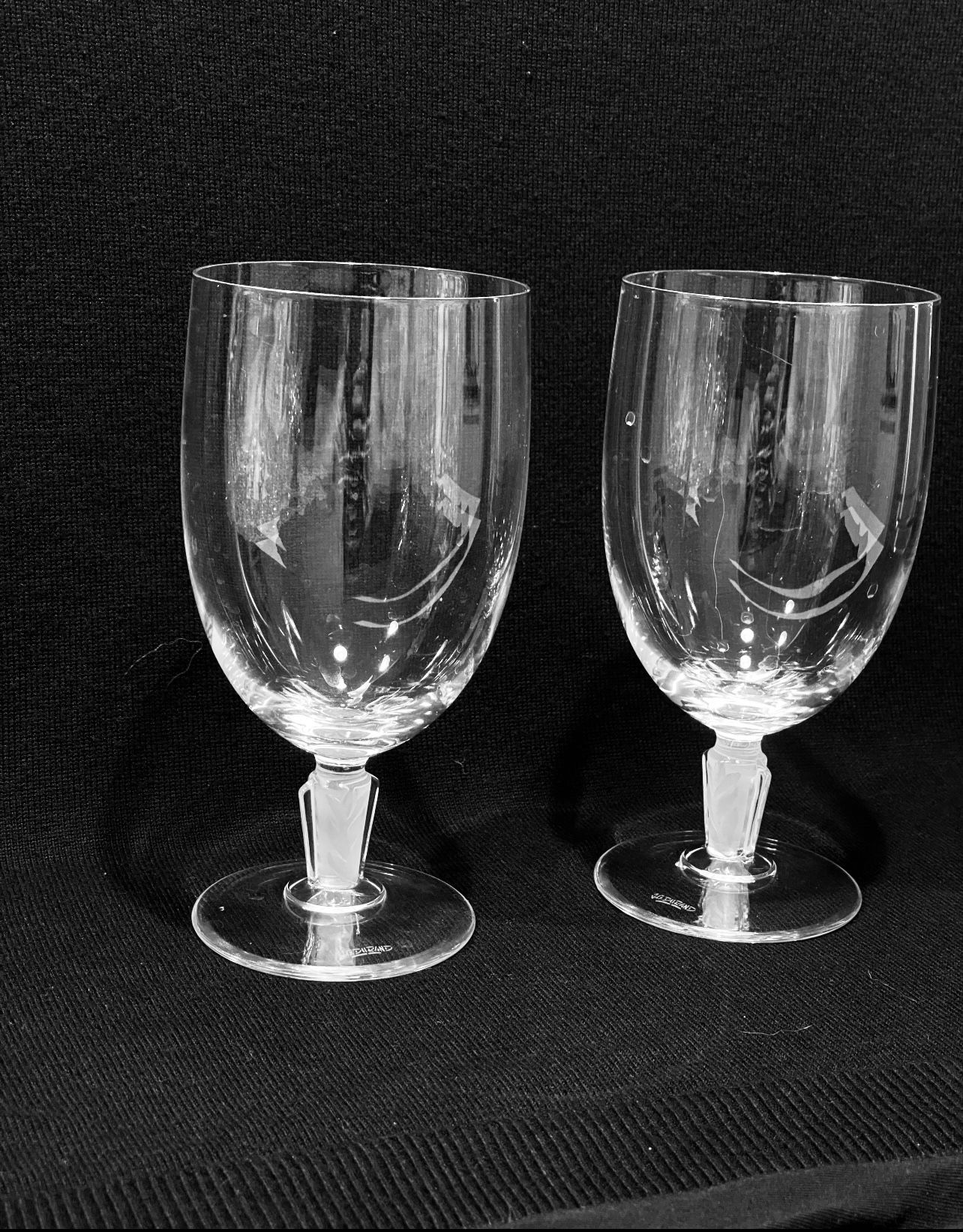 Vtg JG Durand Cris D’Arques Sogaro Set Of 2 Crystal Water Goblets Frosted Stem Plant design. Glasses can be used for water or iced tea . Excellent condition, size: 6.5” tall. Signed on bottom.