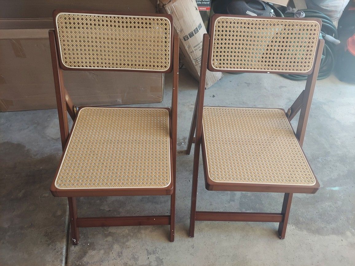 Rattan Folding Chairs, Modern Mid Century Dining Chairs Set of 2, Outdoor Bamboo Chairs for Bedroom Living Room Reading Room Dining Kitchen, Walnut