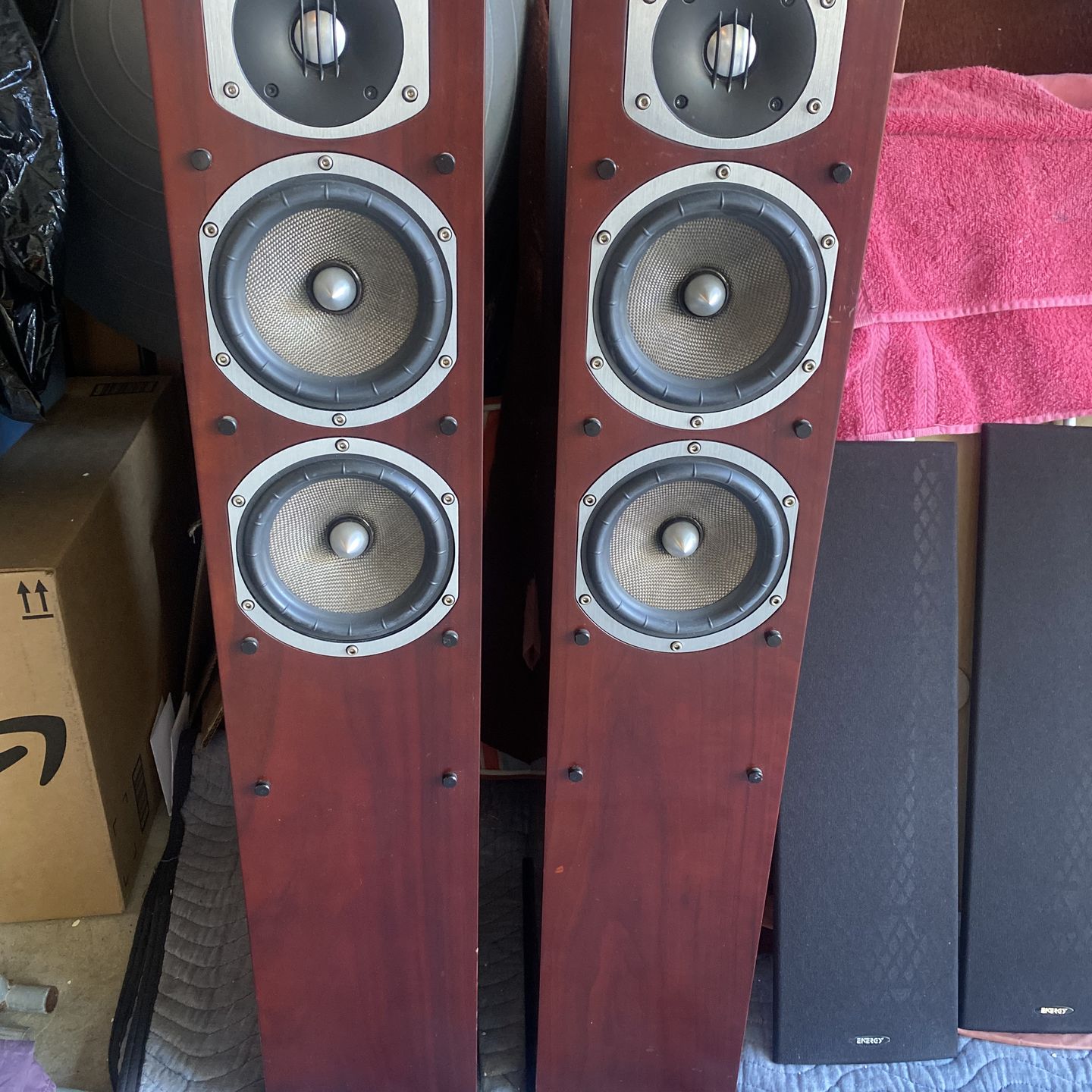 These Energy RC‑30 tower speakers deliver professional-level sound with deep, tight bass and crystal-clear highs. Rarely available locally and in gently used condition with only minor cosmetic blemishes. Perfect for home theater or high-end music systems. Condition: • Fully functional • Gently used, minor cosmetic blemishes only • Cabinets and drivers in excellent shape Specifications: • Dual 5.5” Kevlar woofers • 1” aluminum dome tweeter • Frequency response: 36Hz–23kHz • Power handling: up to 175W • Rear-ported floorstanding design Pickup in Gardena. If it’s listed, it’s available-no need to ask Cash only Energy RC30, tower speakers, floorstanding speakers, audiophile, hi-fi, home theater, stereo, Paradigm, Klipsch, B&W, Polk