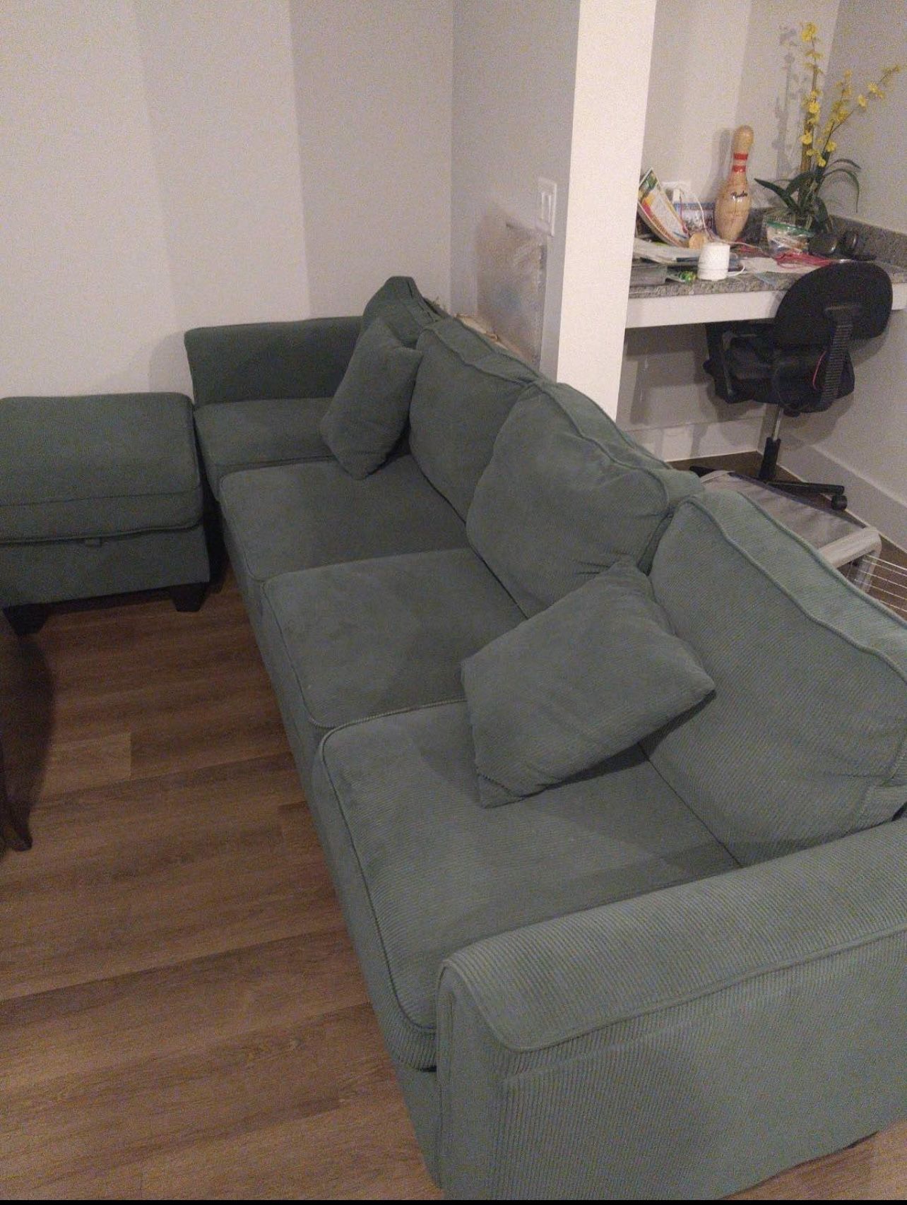 Greenish color tint.. very comfortable! Nothing wrong with it.. moving and need something bigger for family.