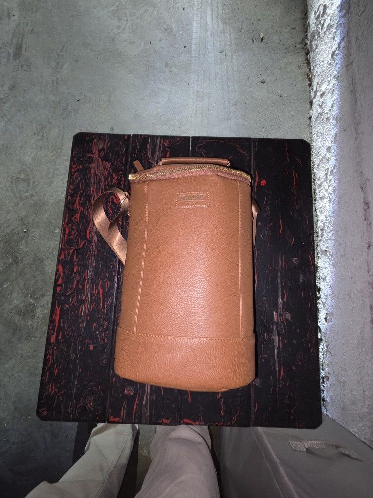 New Igloo Luxe Collection insulated cooler bag with original tags attached. Designed to hold up to 2 bottles, this compact cooler features a stylish faux-leather exterior and a fully insulated interior to keep beverages cold. Equipped with a secure zip closure, top carry handle, and an adjustable shoulder strap for easy carrying. Ideal for picnics, travel, outdoor events, or everyday use. Condition: New with tags. Never used. Features: Authentic Igloo – Luxe Collection Insulated thermal interior Holds up to 2 bottles Zip-top closure Top handle + adjustable shoulder strap Stylish brown faux-leather exterior Lightweight and portable