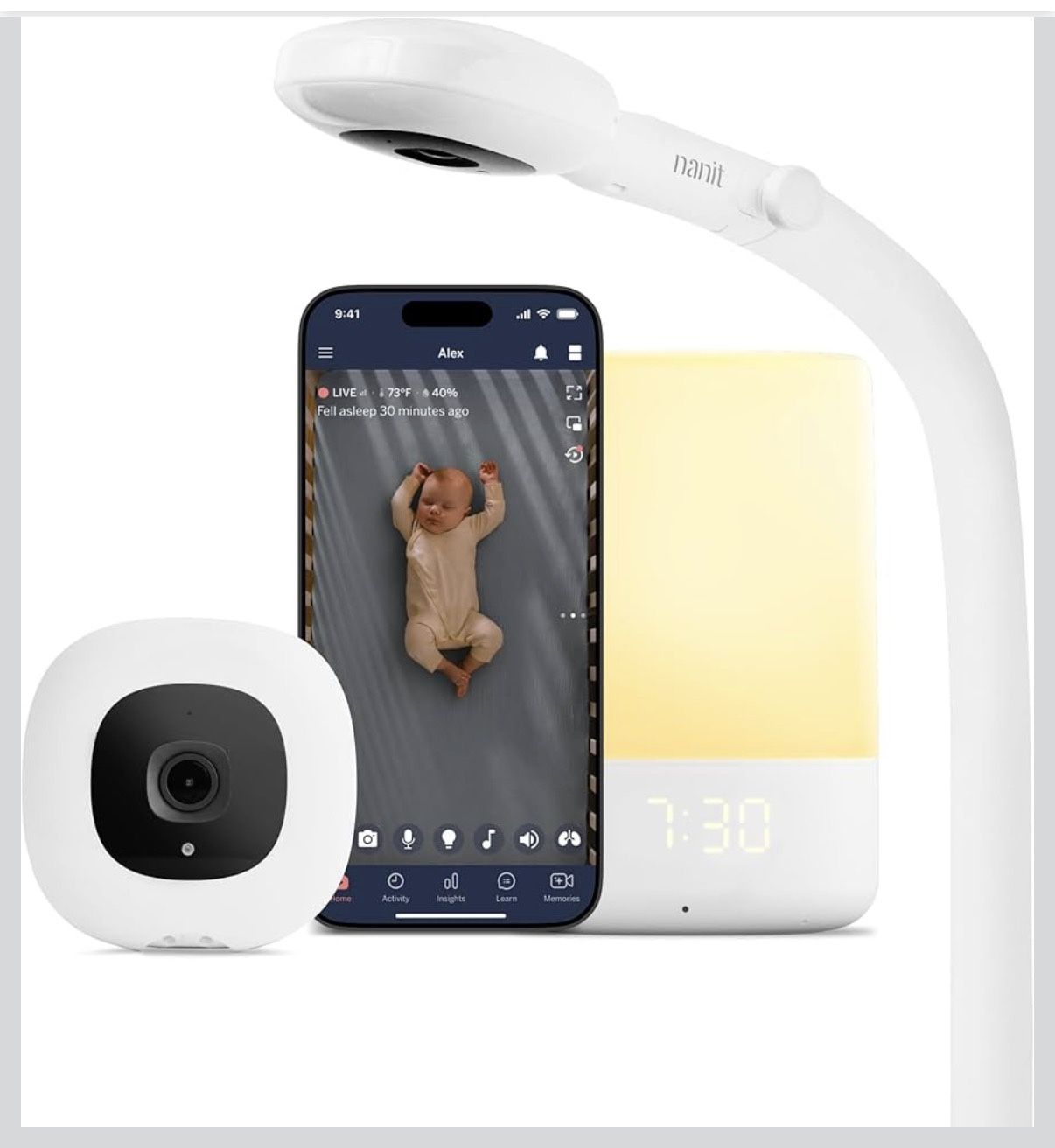 Nanit Nursery Bundle Smart Baby Monitor with Floor Stand – 1080p HD Wi-Fi Camera, Sensor-Free Breathing Monitoring, Sleep Tracking, Two-Way Audio, Night Vision, Motion & Cry Notifications, White Purchased for $385