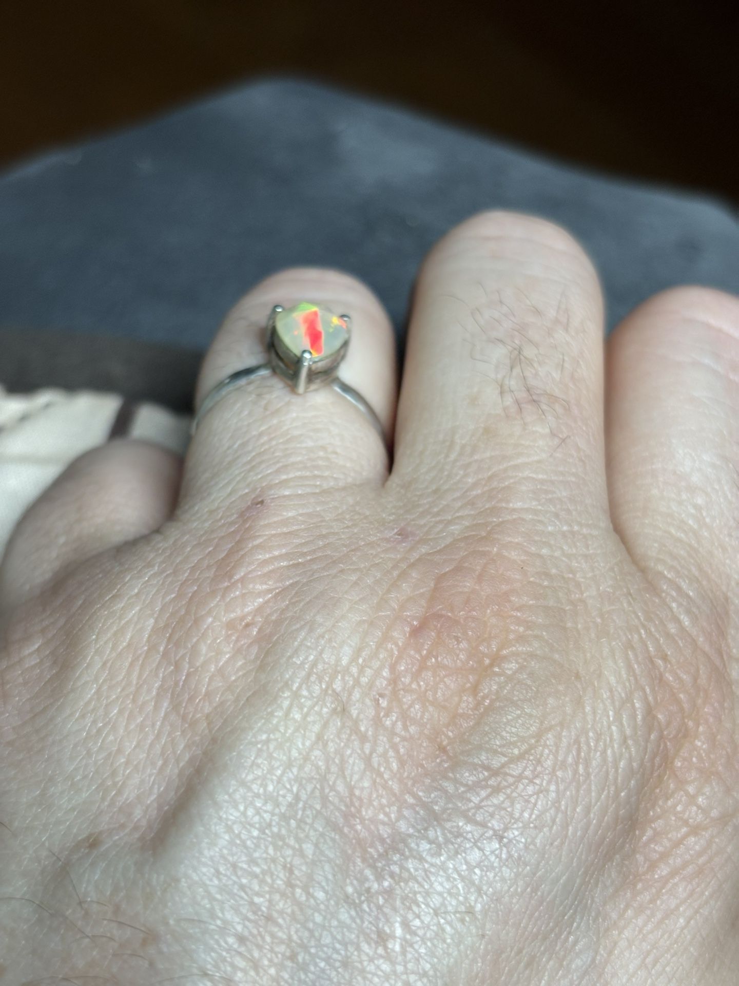 Give your girl something truly spectacular and different. Stunning color, very versatile, beautiful flash natural Welo Opal set in silver size 7.5