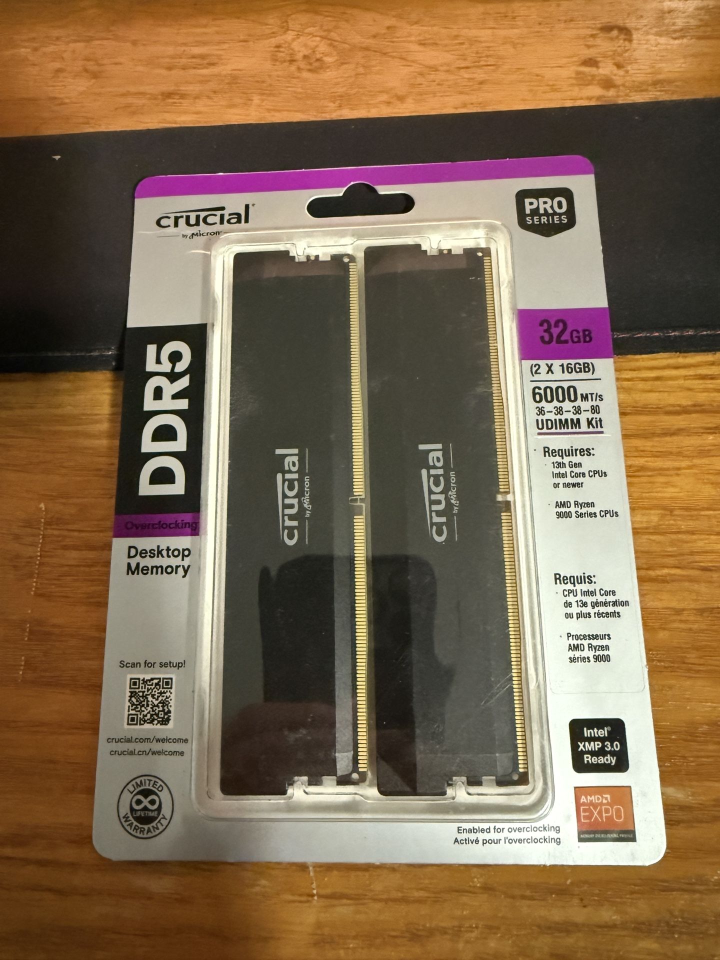 Brand new Crucial Pro 32GB Ram Memory DDR5-6000 PC5-48000 CAS Latency 36, Timings 36-38-38-80 1.35 Volts Black Aluminum Heat Spreader No LED Lighting