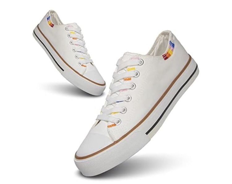 ANQILA Women Canvas Shoes Low Top Lace Up Canvas Sneakers Non Slip Shoes Casual Fashion Running Lightweight Breathable Low Cut Comfortable Canvas Shoes Walking, Rainbow White, 7