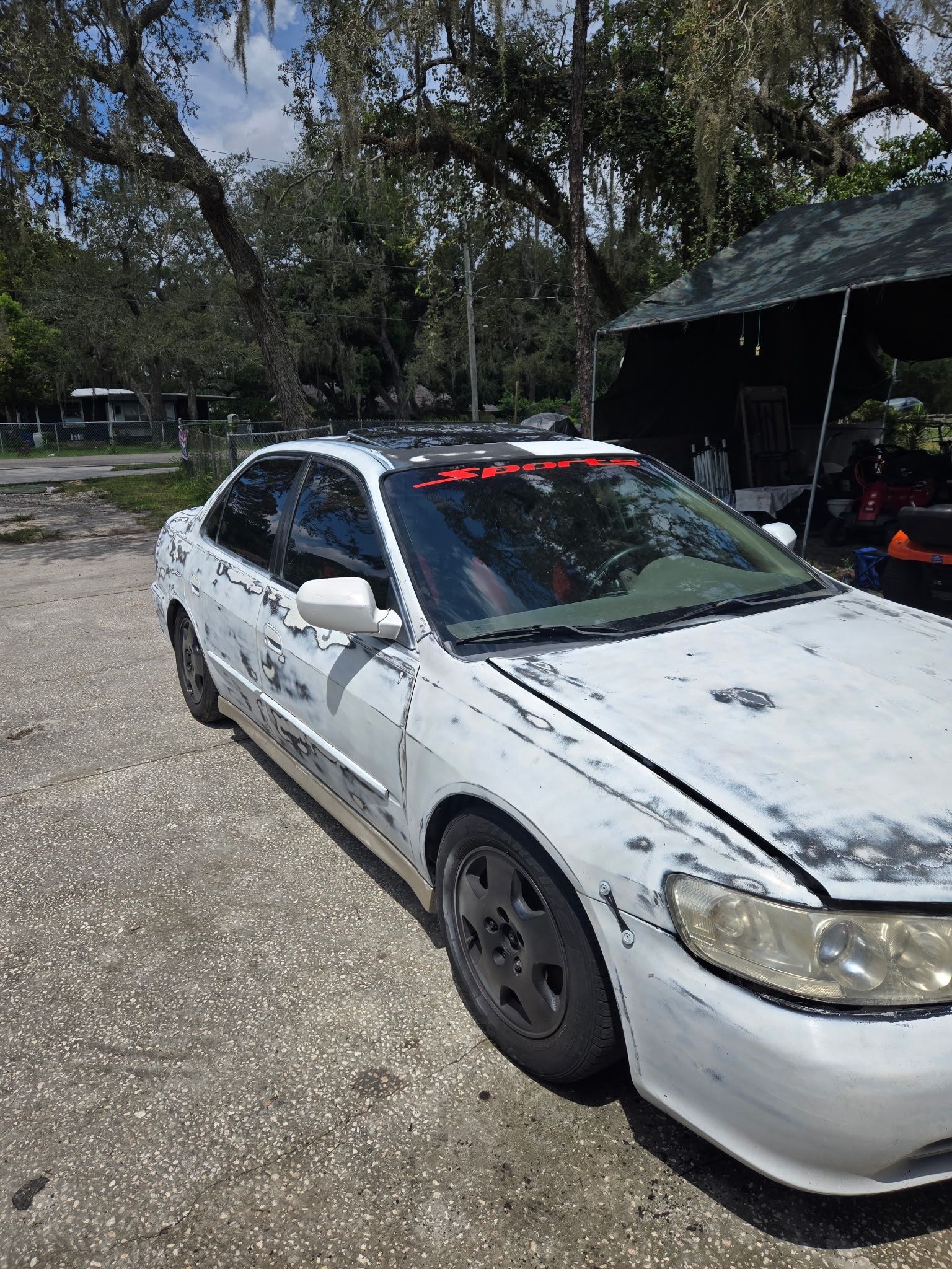 2002 Honda accord lx with 268,xxx miles, car runs strong ac and windows work as well as the sunroof. Still trying to figure out why the radio stopped working but the face does turn on. Cars lowered on coilovers and tires have 8/10 tread. Car needs a transmission mount I have paper from dealership I work at stating that’s the issue, car still runs and drives and honestly a steal for the price! Muffler is cut by previous owner 900 obo