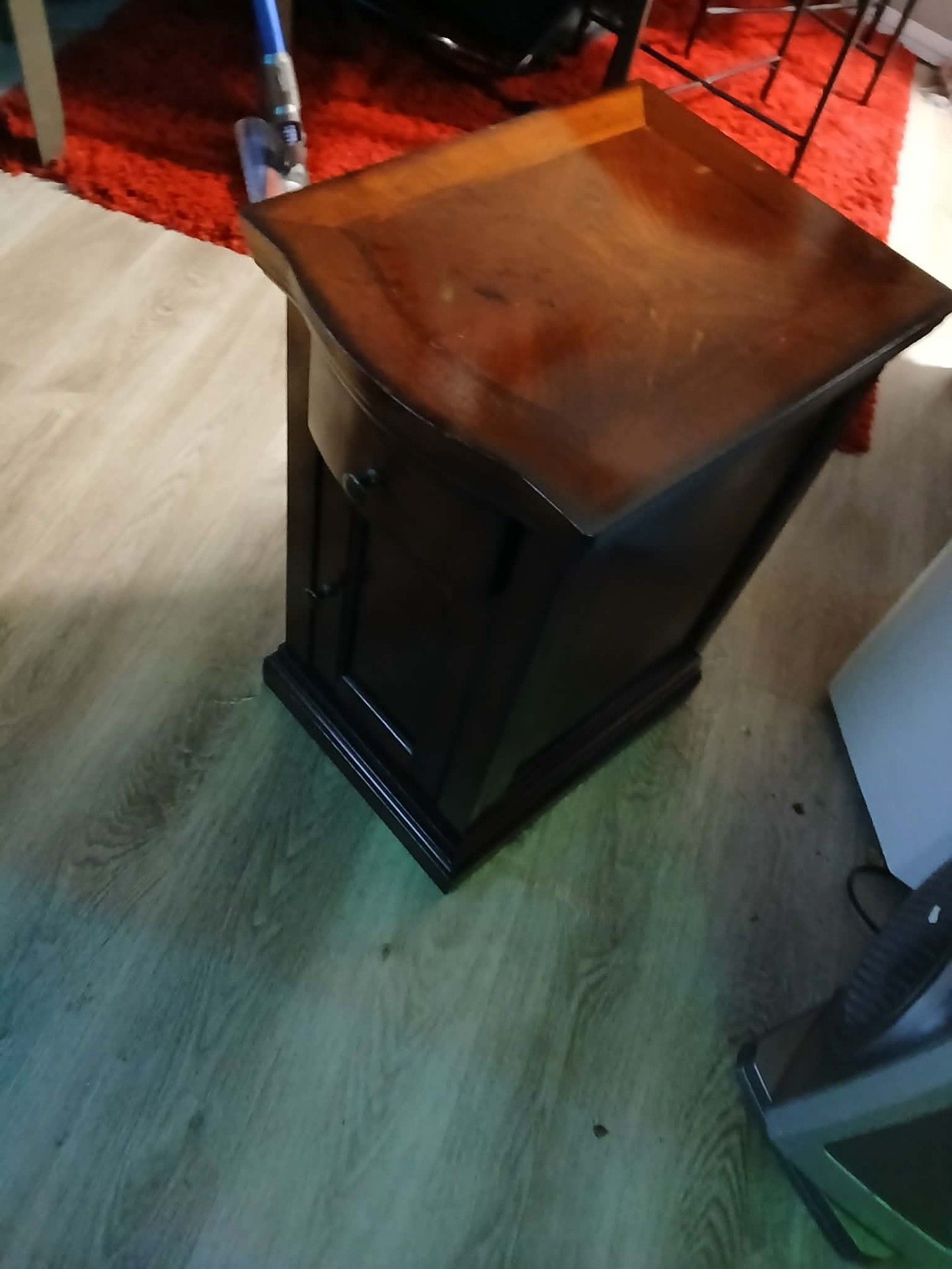 Wood side table with drawer and cabinet