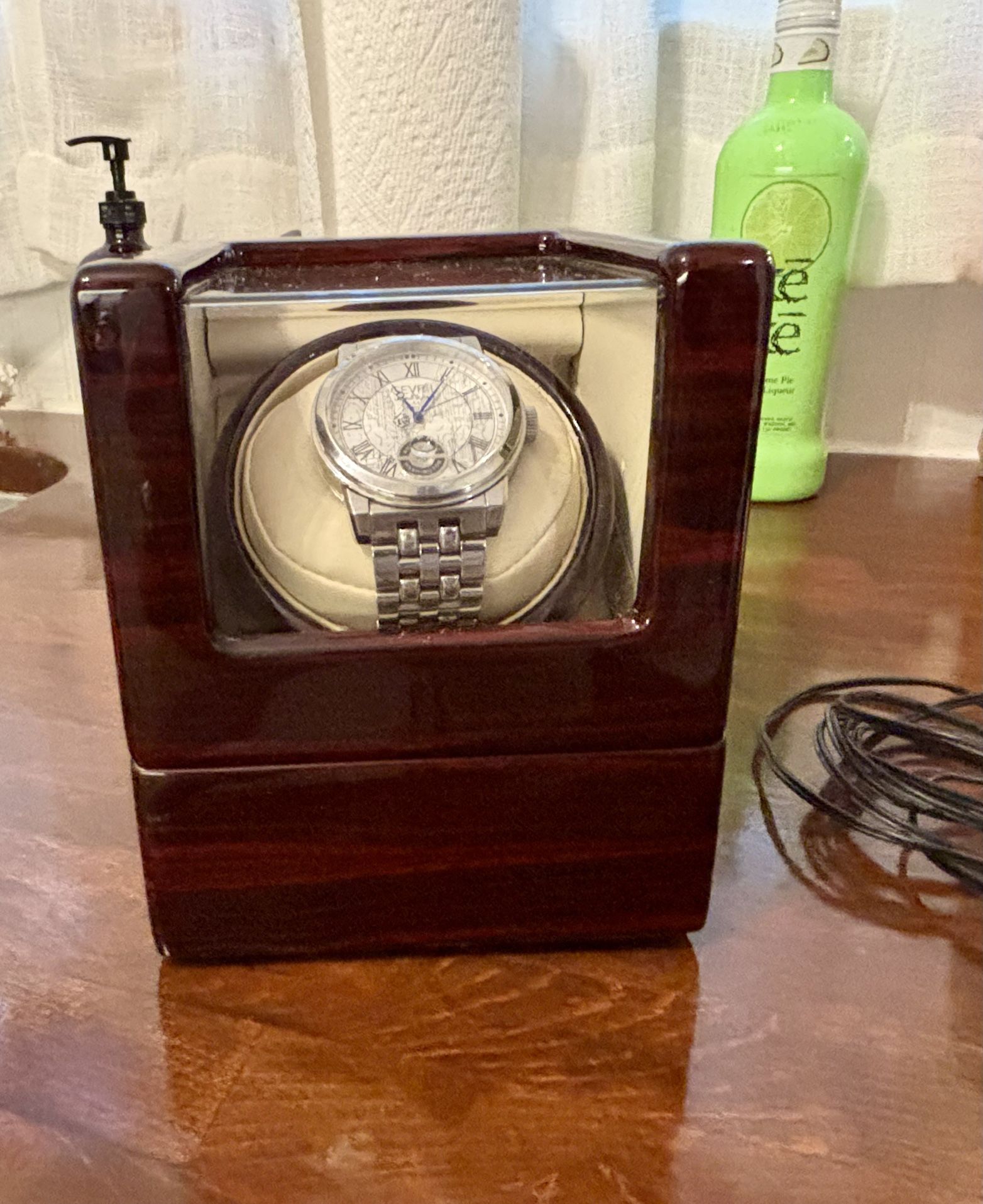 Runs on batter or plug. Comes with extra watch cushion. * Watch not included*