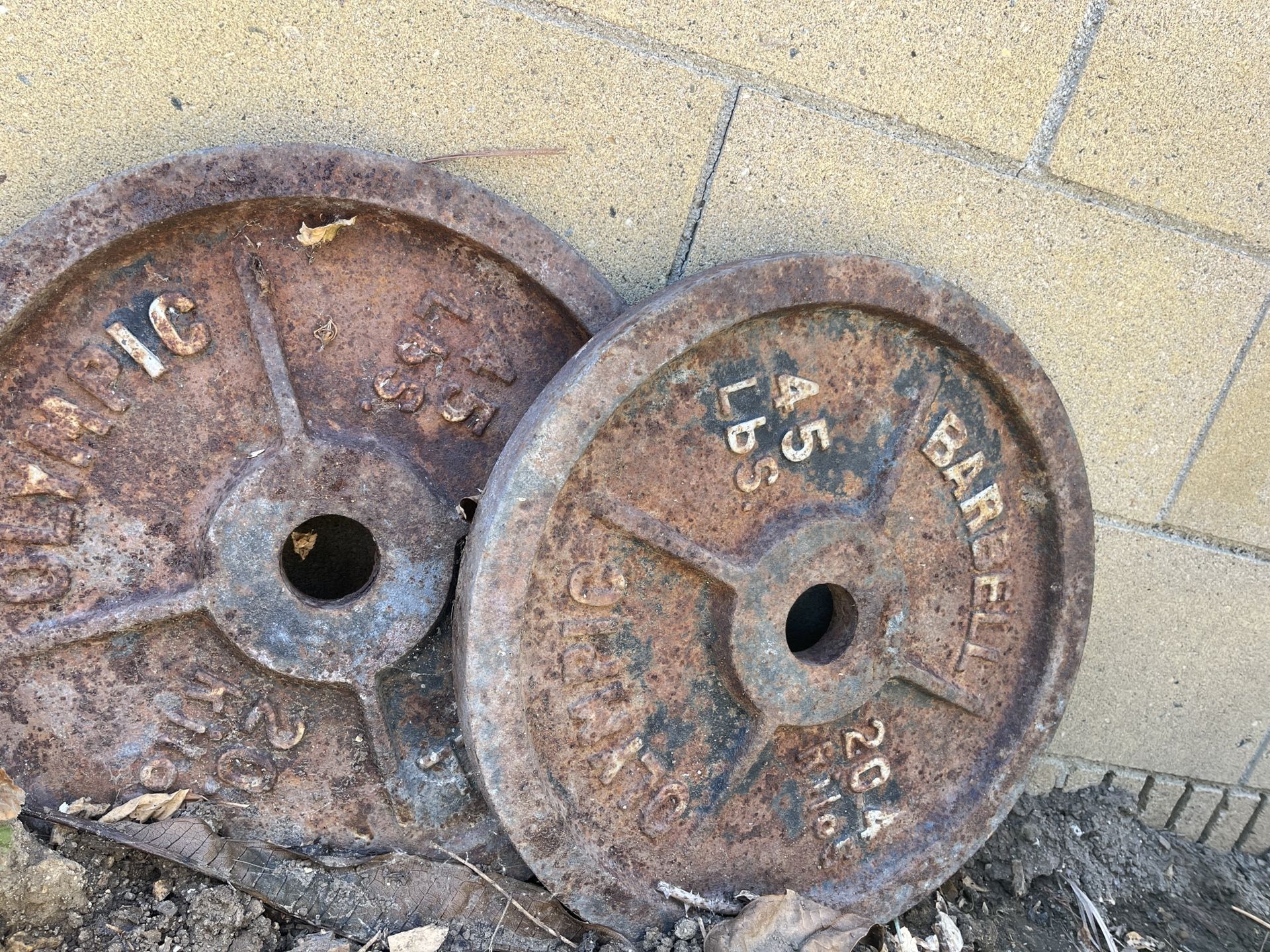 Barbell plates olympic plates 40 each or $75 for both todsy Workout Gym Bench press Boxing Weights Weight 45 pounds