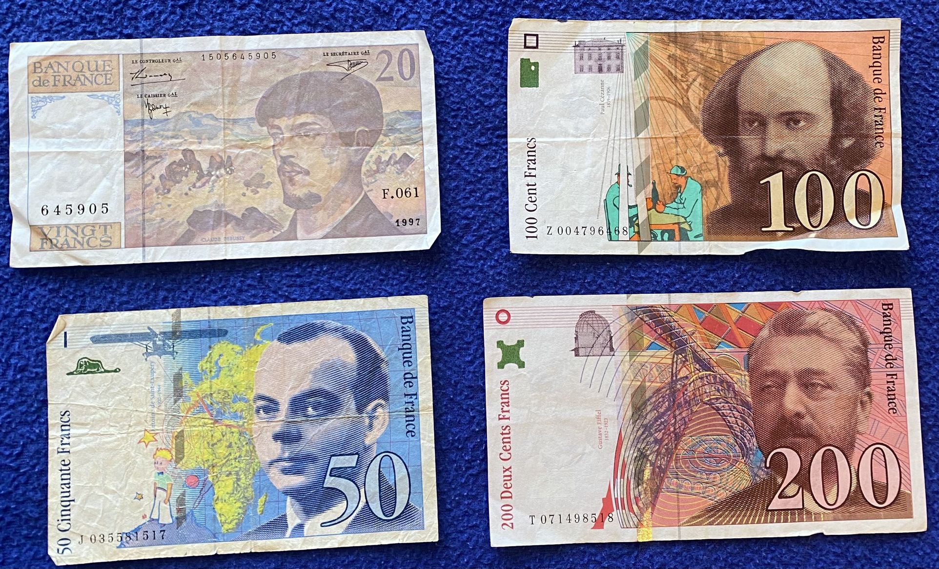 Banque de France 200, 100, 50 and 20 Circulated Banknotes