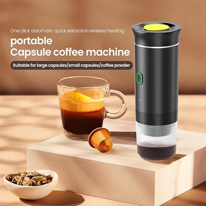 OutIn Nano Portable Electric Espresso Machine Experience the convenience of our OutIn Nano Portable Electric Espresso Machine, designed for both camping and daily use. This travel coffee maker is perfect for those who love to stay connected while enjoying a delicious cup of coffee. Key Features: Self-Heating Function: Enjoy hot coffee without the hassle of manual heating. Simply plug it into a power source and let it do the work. USB-C Compatibility: Easily connect to your vehicle's charging port for a seamless charging experience. Ground Coffee & NS Capsule: Enjoy a variety of coffee options, including ground coffee and NS capsules, making your coffee experience more diverse. Versatile Use: Ideal for camping, hiking, and even in the office, this coffee maker is a practical addition to any space. Size: 8.4cm*https://offerup.com/redirect/?o=MjQuY20= weight:1.8lb Whether you're on the go or enjoying a quiet moment, the OutIn Nano Portable Electric Espresso Machine is your perfect companion for a delicious cup of coffee.