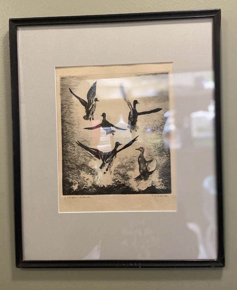 Pre Owned VTG Beautiful“Startled Mallards” Print Signed By Reinhold H Palenske
