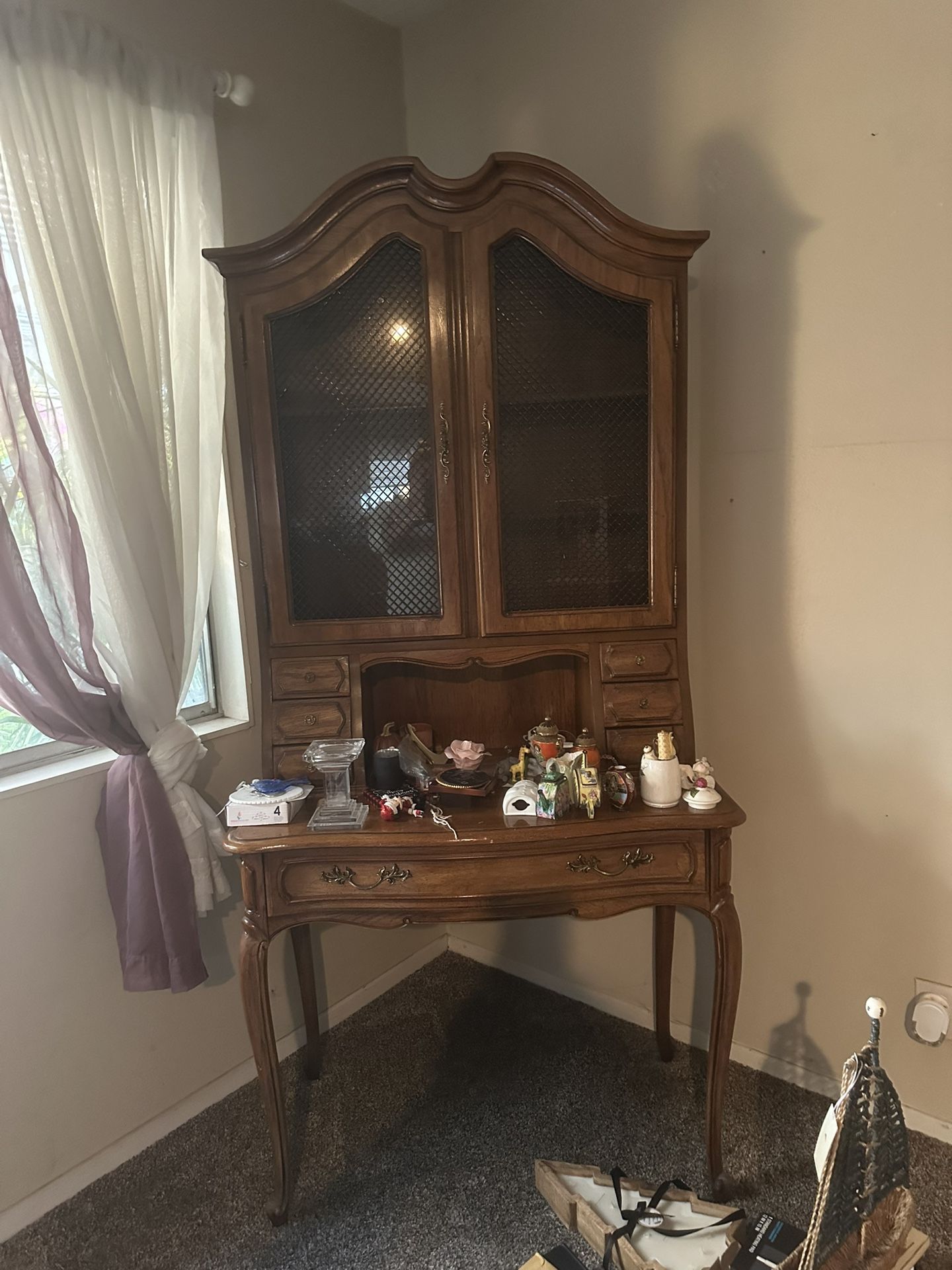 Pure pecan wood- beautiful desk/hutch- in pristine shape. Just don’t have room for it! Will need to be picked up in Frisco. It is currently wrapped very well for transport.