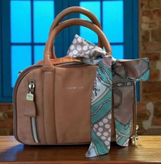 See By Chloé Real Leather Tote Bag With Detachable Scarf