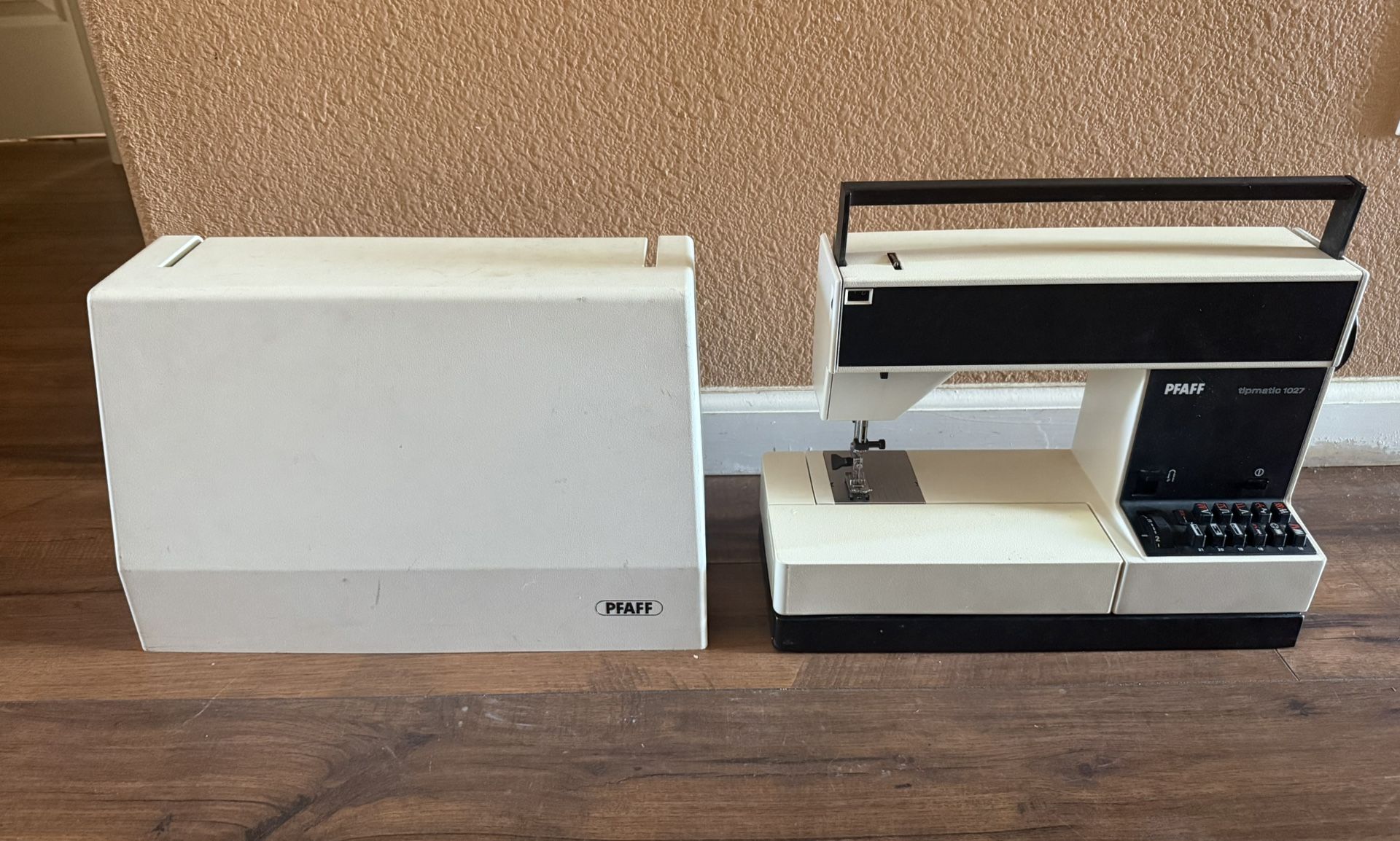 PFAFF Tipmatic 1027 Sewing Machine Untested No Power Cord Not tested . No power cord came with it when I got jt . Selling as is . Comes with case though