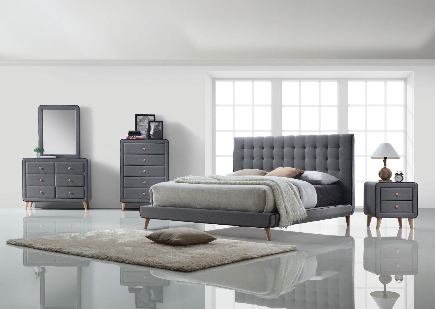 4-PCS Queen Size Bedroom Set in Offer New in box 📦 Delivery service 🚚 Included: Queen Size bed, dresser, mirror and nightstand Hablamos español también Maranatha Furniture