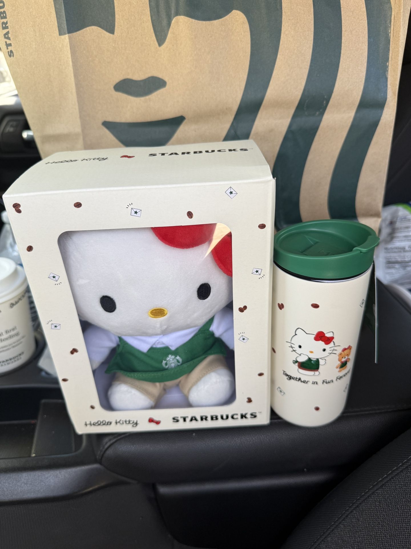 Starbucks hello kitty plushy and cup $250 together ****separate Cup 80 Plushy 80 *****+ SOLD