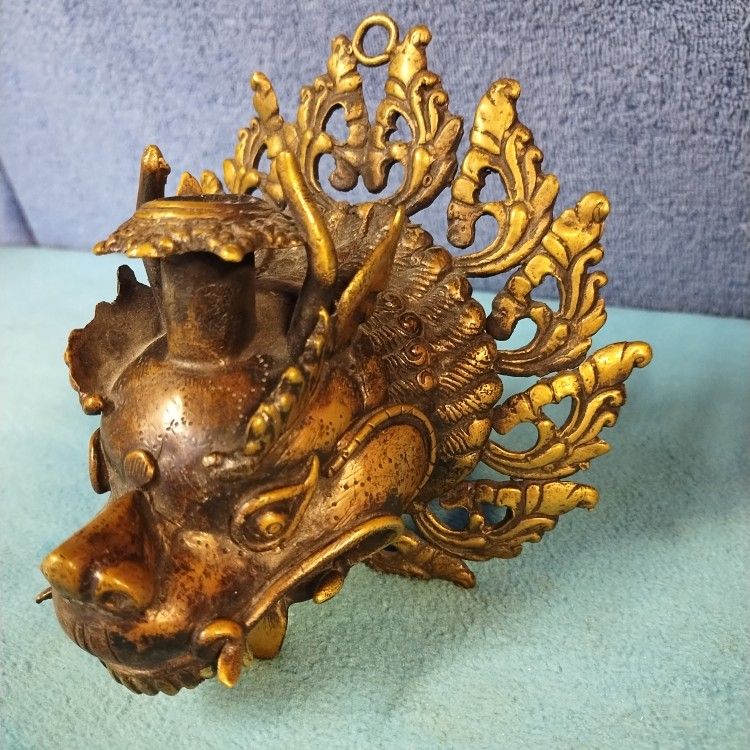 Dragon Head Incense Burner, Can Sit on Table or Be Wall Mounted, Brass/Bronze Metal, 6"H x 6"W x 5"D, See Pics for Condition, Local Pickup Only in the Lilburn-Stone Mountain Area