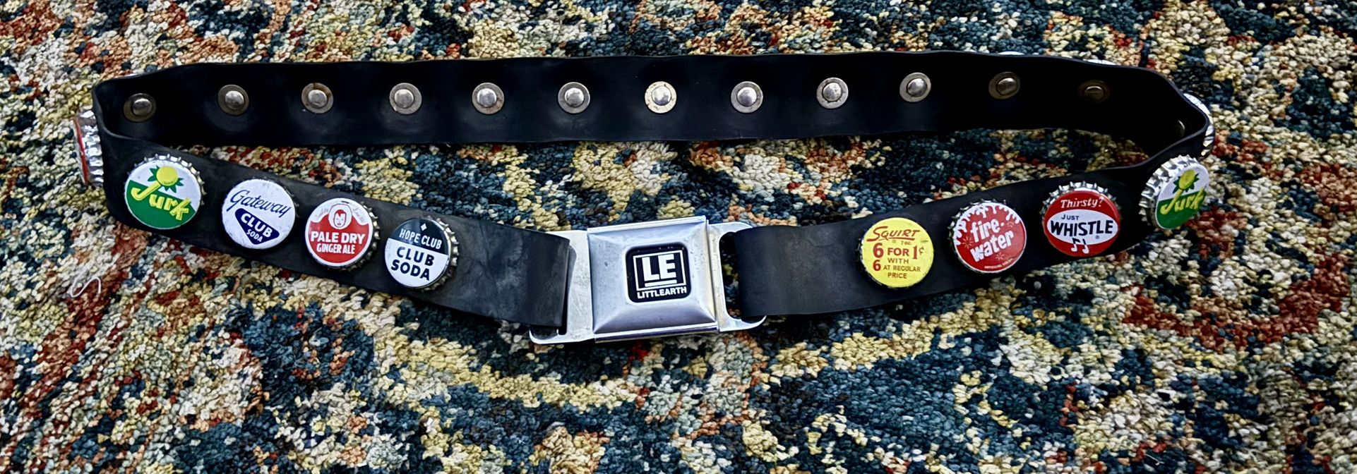 Vintage Little Earth Black And Silver Bottle Cap Belt