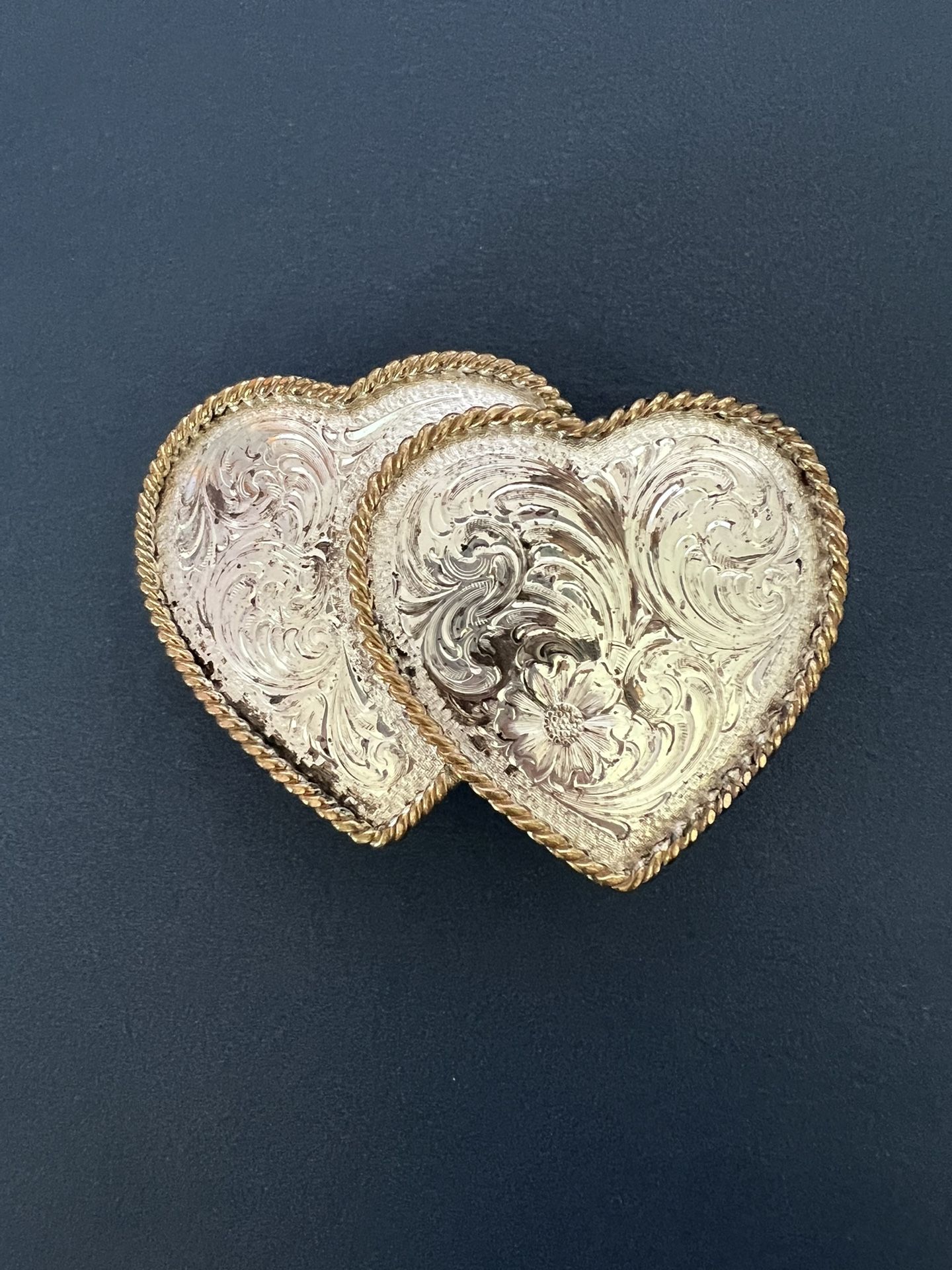 Vintage Montana Silversmiths Western Dual Heart Belt Buckle
