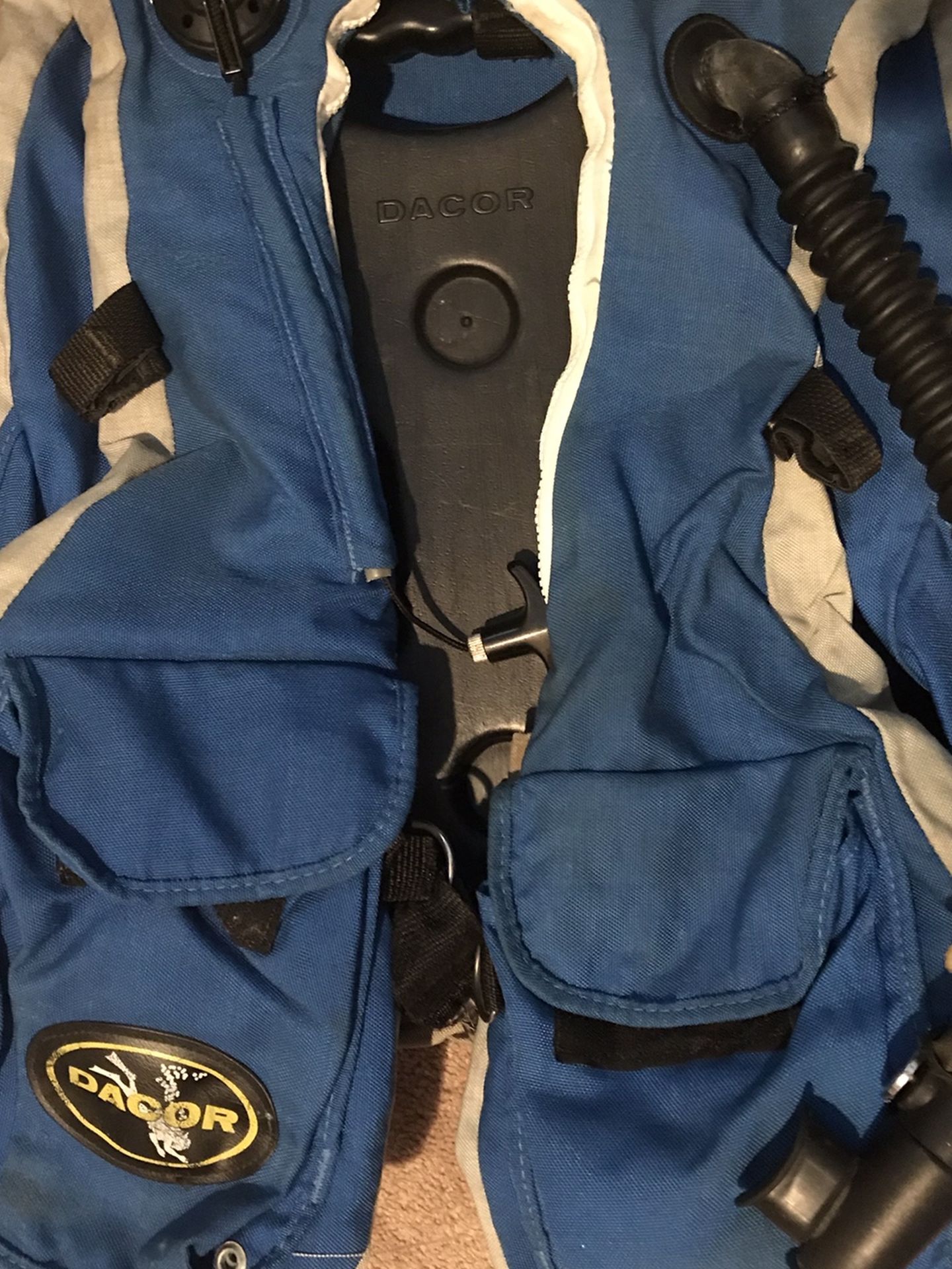 Scuba bc Buoyancy compensator Dacor Decent condition Fits around 5’8”, 155 pounds