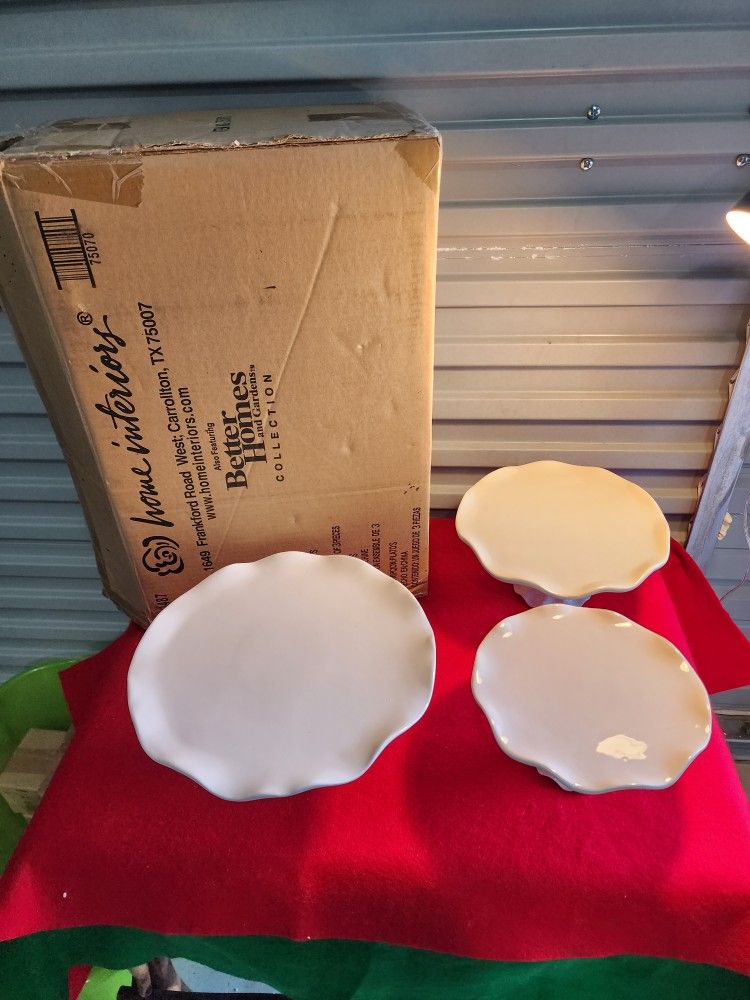 NEW HOME INTERIORS Better Homes & Gardens Raised Ceramic Cake Appetizer Plates. This is a set of 3 different sizes. 11 inch diameter and 5 inches tall, 9 diameter inch and 4.5 inches tall , and 8 inch diameter and 4 inches tall. My aunt was a Home Interiors in home sales person. I have other Home Interiors items listed with more to. I SHIP SAME BUSINESS DAY IF PURCHASED BEFORE 1030AM. NEXT BUSINESS DAY IF PURCHASED AFTER 1030AM.