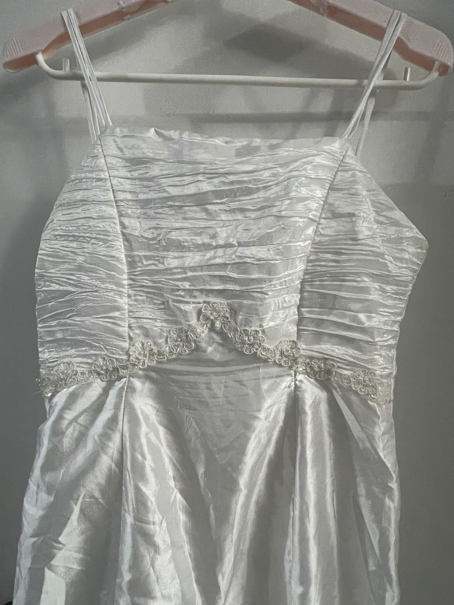 Teen size dress For first communion Primera comunión Talla 16 Size 16 White dress Has not been dry cleaned Used for a first communion Beautiful long white dress Pick up only Cash only Please check item is to your liking before purchasing No refunds Wedding dress Teen Tween Baptism Formal Fancy