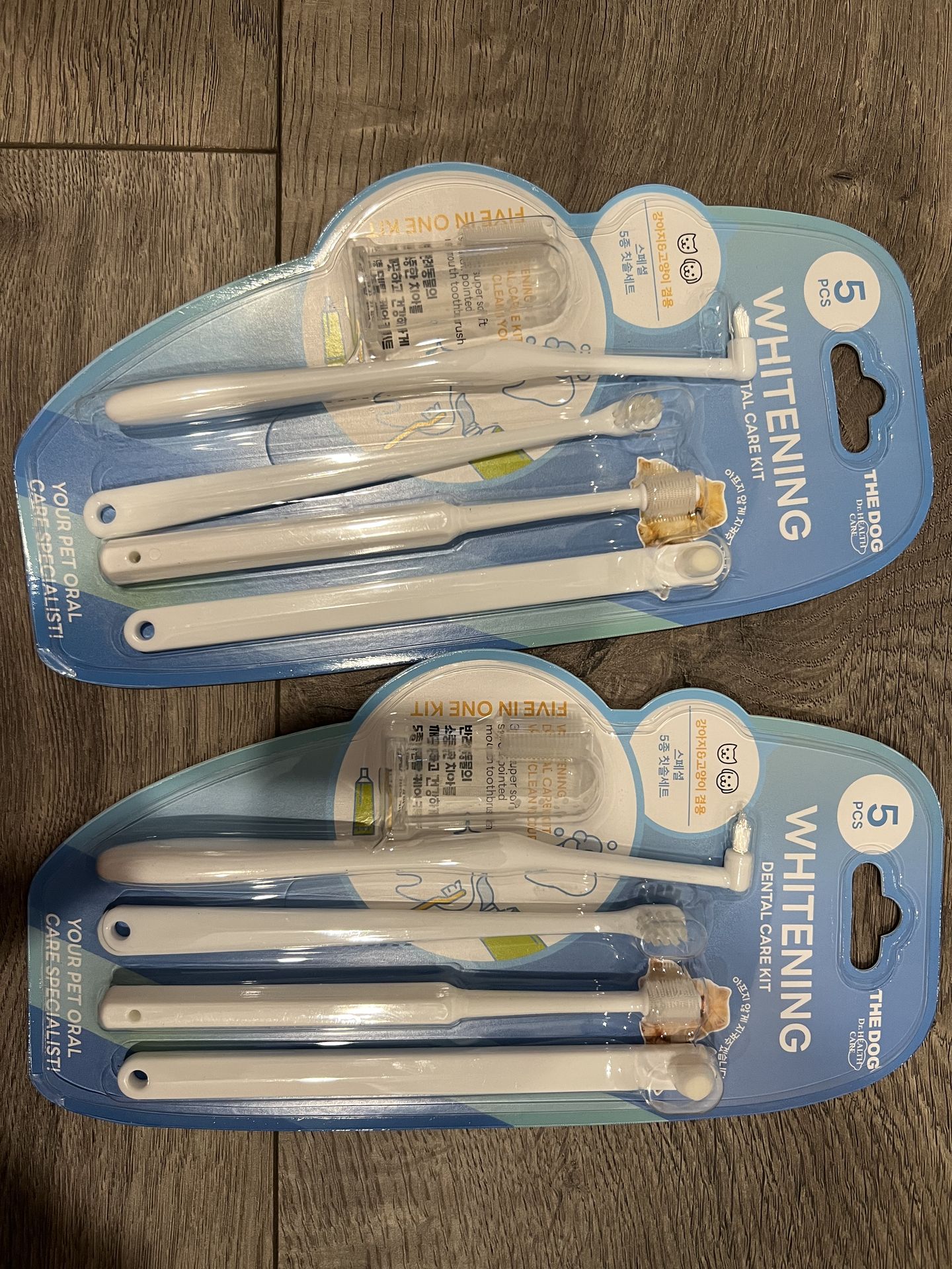 I bought these for my dog, but he recently had many teeth removed so we no longer need them. I purchased them from a pet shop in Korea. It’s a set of 5 different toothbrushes for small dogs or cats. $10/each and I have two.