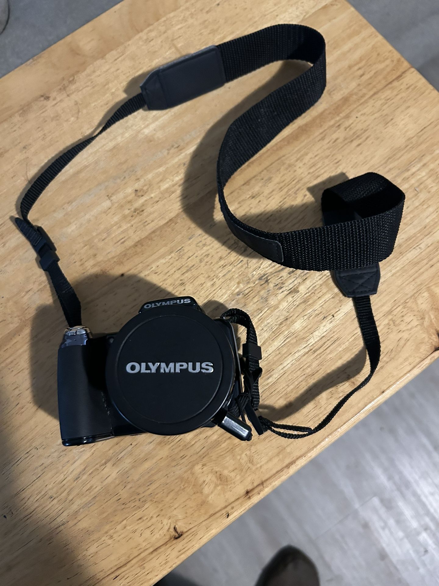 Olympus digital camera. Needs battery and charger. Olympus SP-815UZ, 14 megapixel. Has strap and lens cover. Like new. As fast as I know it works fine with battery and charger.