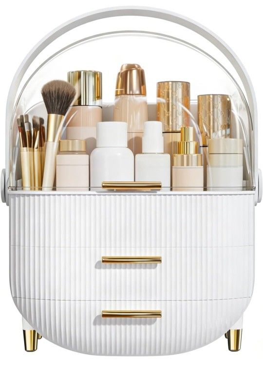 Makeup Organizer Skincare Organizers - Cosmetic Display Cases with Transparent Cover, SkinCare Organizers for Bathroom Countertop, Bedroom Vanity Desk, Lipstick Organizer, White
