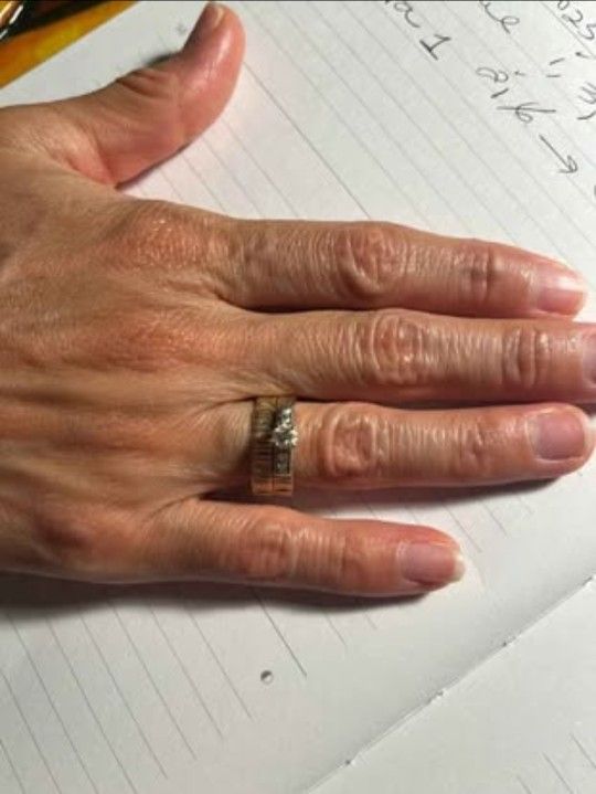 Solid gold with 5 pearls. 7 to 7.5 ring size