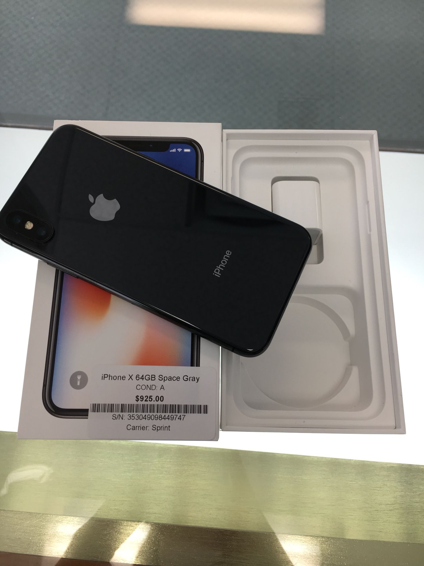 Mint condition Apple iPh1 X 64GB Space Gray for Sprint Carrier Comes with full 7 day software and hardware store warranty Ph1World: 4760 W Sahara ave suite 27 Las Vegas,NV 89102 Mon - Sat 9am - 7pm Sun ClOSED {contact info removed}