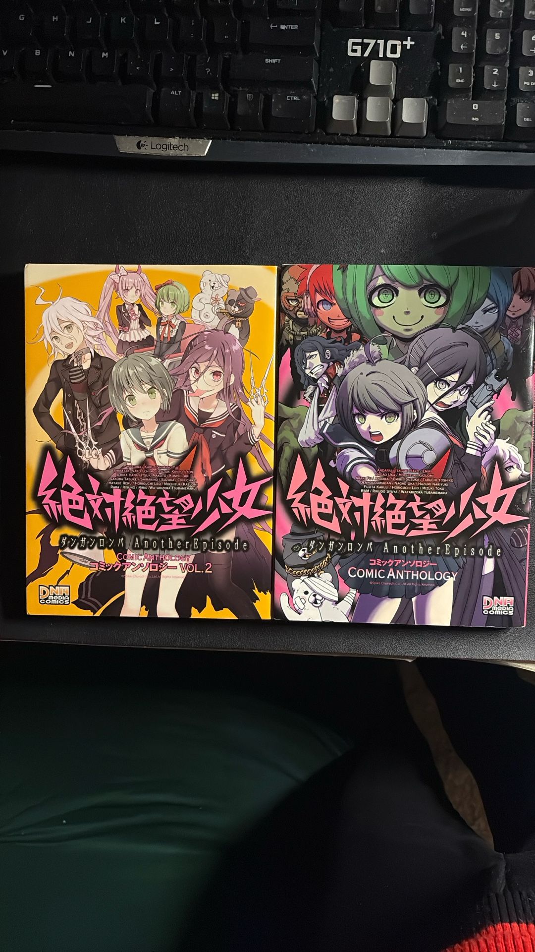 Volume one and two of the comic anthology for ultra despair girls danganronpa