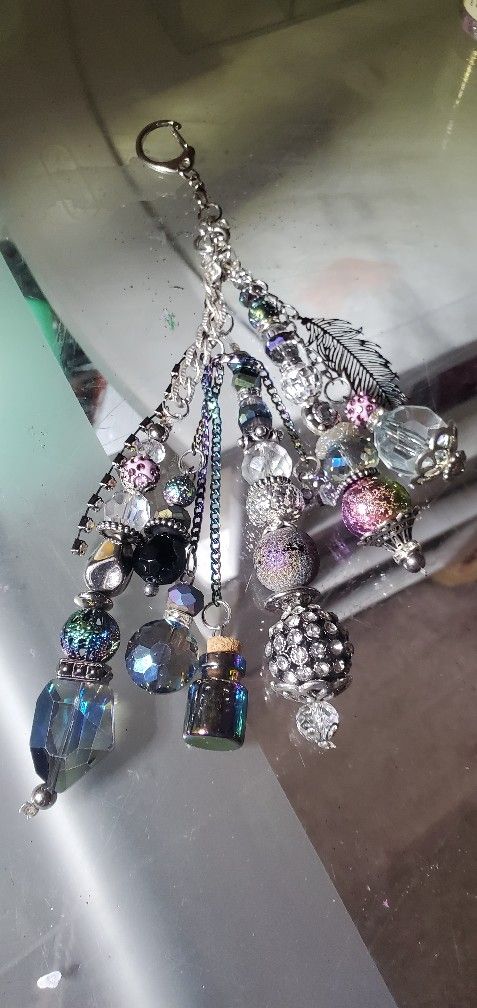 These are examples of charms but if you send me a picture of your purse. I have thousands of beautiful sparkly glass beads so I can customize the color and charms for a more personal touch. These charms are a classy touch to any bag. I make them with quality material and can personalize/customize them for any occasion whether a bride to be and her bridesmaids or just to be the envy of your gals, these charms are a head tuner for sure!! Price varies depending on customizations but they start 25. I garauntee you’ll be happy with your purchase !!