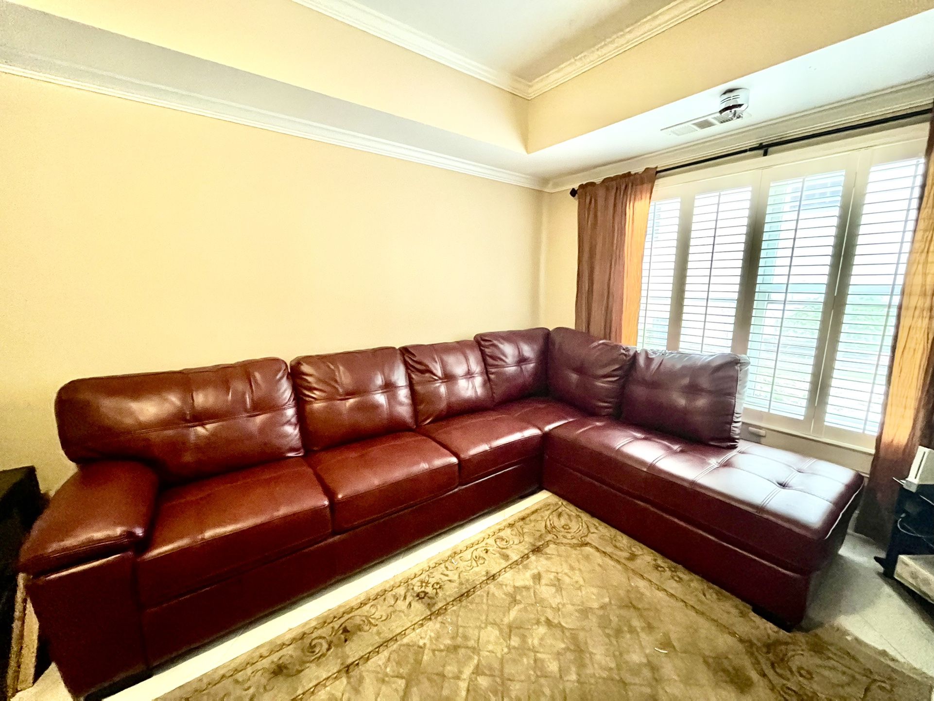 This sofa is comfortable. Selling a rarely used red sectional sofa that is currently in our basement. It was used more for staging. Paid $1500 selling for $500