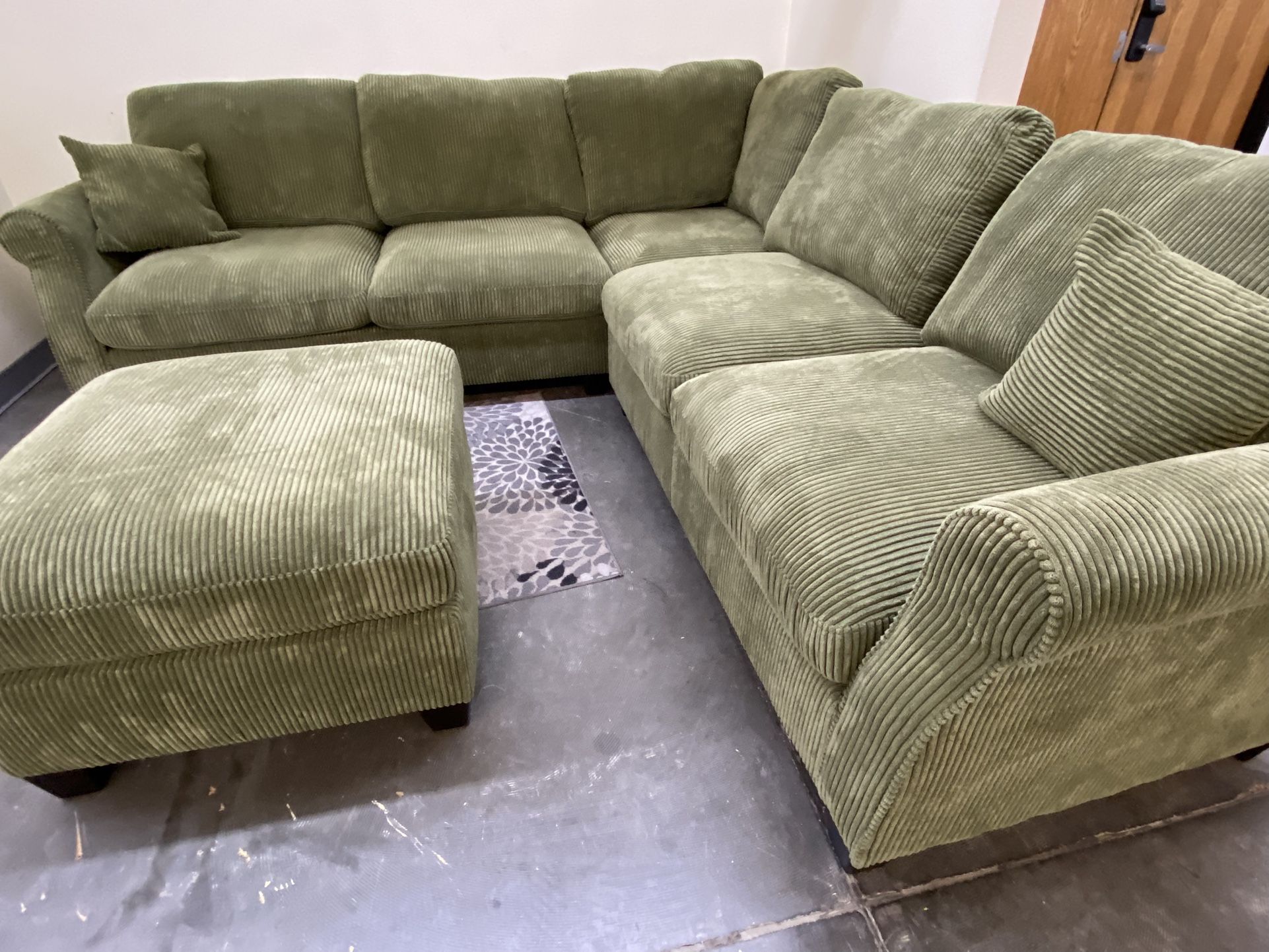Sage Green Sectional Sofa includes ottoman and accent pillows 99x99 pick up / can deliver all payment types accepted including cash cards layaway Zelle easy NO CREDIT NEEDED no interest financing text 31210 to 523363 to apply credit builder program model home furniture clearance warehouse discount discontinued overstock items Los Angeles Riverside San Bernardino Orange County Ontario Ranch Rancho Cucamonga Fontana Riverside San Bernardino Rialto Highland Corona Jurupa Valley Norco Mira Loma Eastvale Pomona Chino Hills Moreno Valley Upland Montclair Claremont Grand Terrace Diamond Bar Brea bedroom mattresses living room couches recliners sectional sofa sleeper love seat dining outdoor furniture fireplaces accent rugs lamps and more