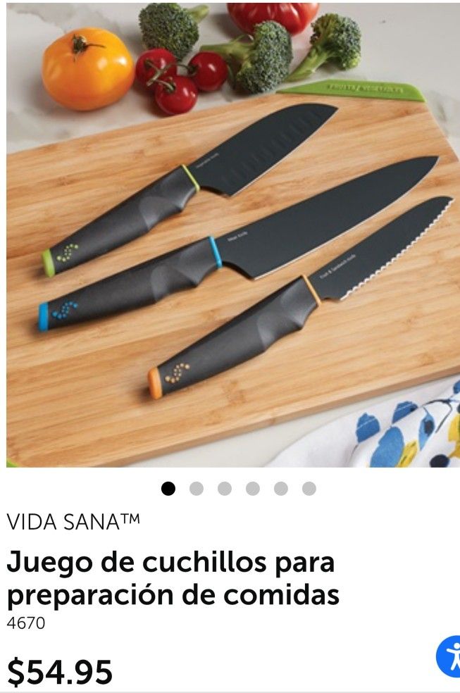 Princess House 3 cuchillos Cada cuchillo tiene su propio estuche Nuevo $40 *También disponible la tabla para picar de Bambú, de Princess house $27.00 También disponibles más utensilios de cocina princess house, en color azul. Revisa mi espacio para saber los precios