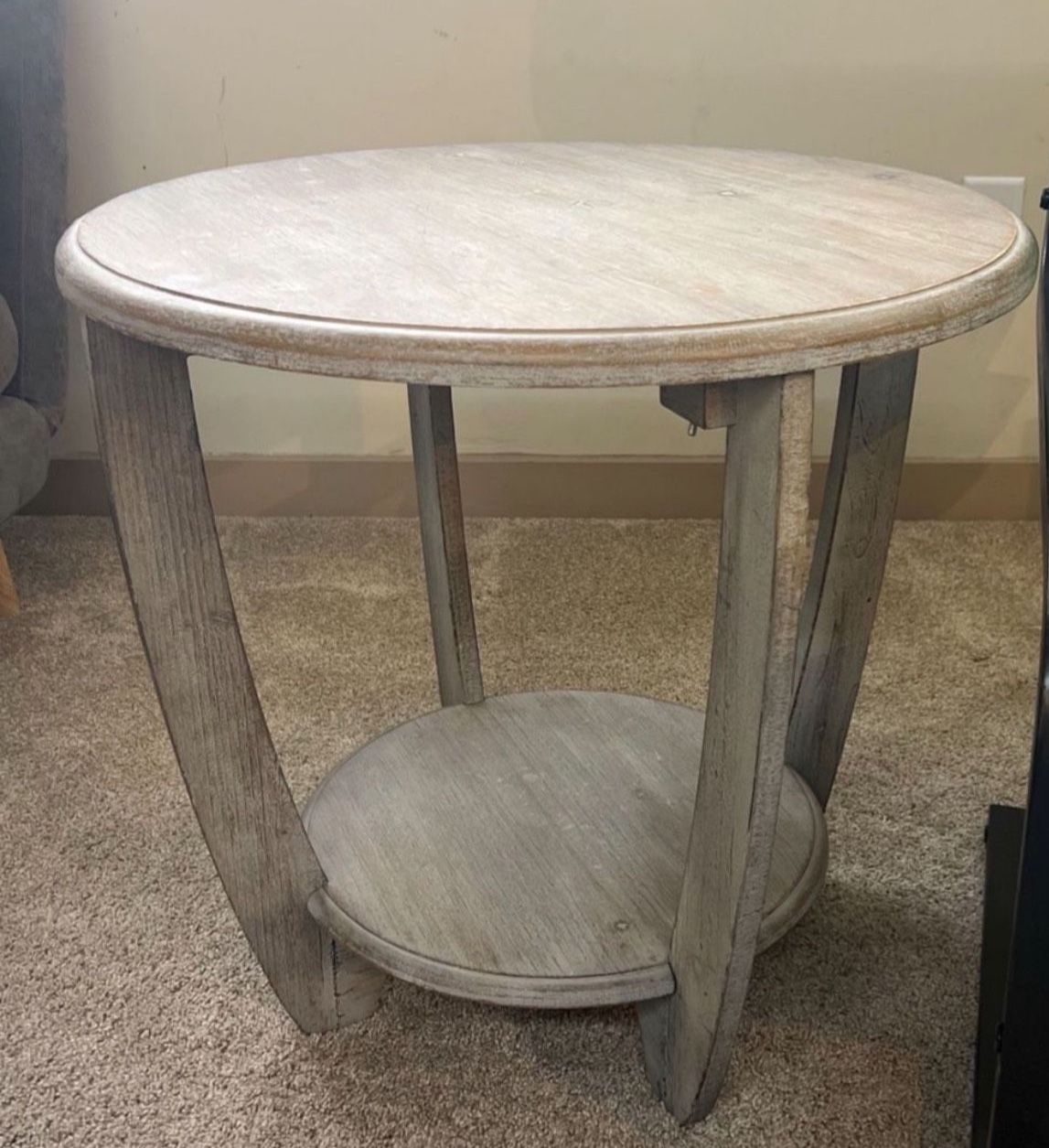 Wood Coffee Table/Side Table – Grey This unique, versatile table is perfect for adding character to any room! Whether you’re into Boho, Scandinavian, Barnyard Chic, or a distressed aesthetic, this piece will fit right in. It stands about 22” tall and is 2 ft wide, offering just the right amount of surface space for your living room or bedroom. Originally purchased for $80 from Home Goods, this stylish table is in excellent condition and ready to elevate your space! No flaws. Priced to sell!