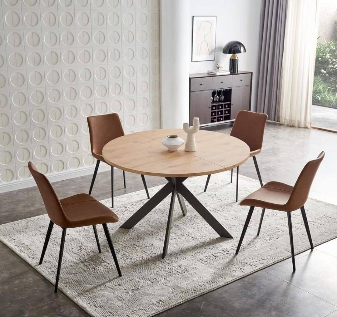 46.4" Round Dining Table Set, Mid Century Modern Round Dining Table for 4-6 Person, w/Steel Legs, Coffee Table for Kitchen Dining Room, Office, Save S