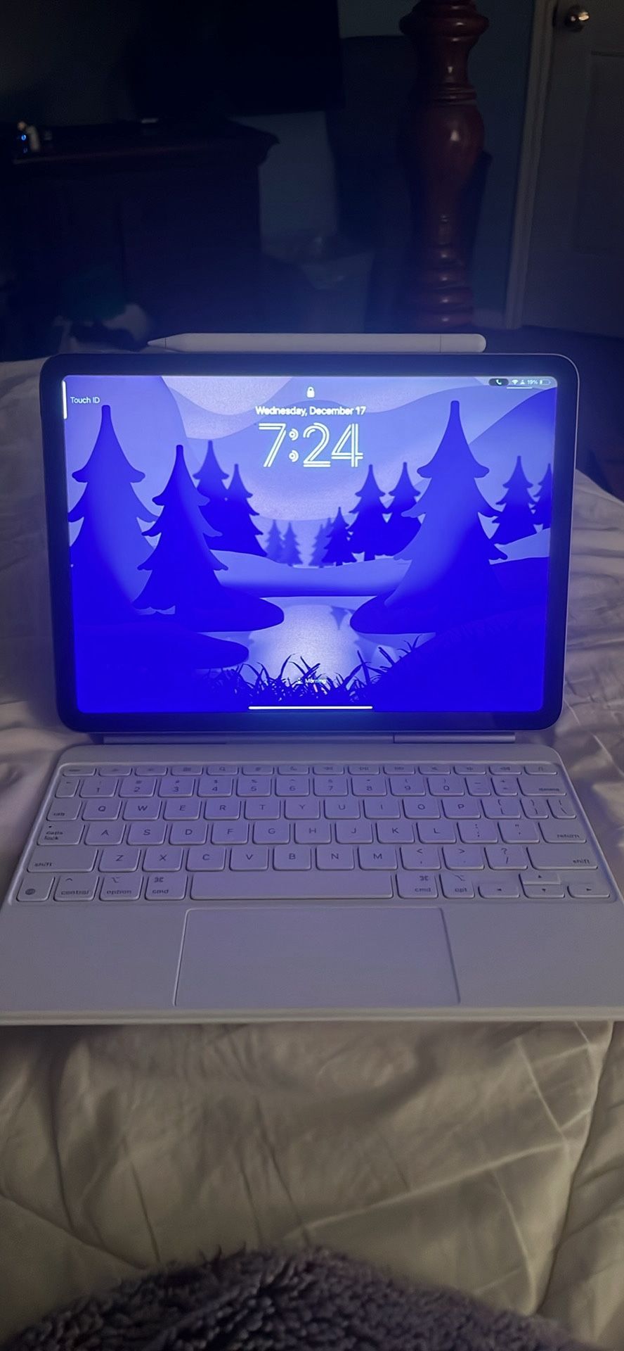 $750 OBO Will sell separately at the right price And I have boxes for everything (iPad, Magic Keyboard, and Apple pen) Mainly looking to trade for a MacBook if possible, looking for a MacBook Air or Pro with at least an M3 chip if not looking for $750 or best offer Like new, couple scuffs on the outside of the Magic Keyboard that I just haven’t talent the time to clean off, Bought this around 3 months ago because it was a bit cheaper than a MacBook and I figured it would serve the same purpose but I think I need to upgrade to a MacBook, this thing is incredible, definitely the fastest mobile device I’ve ever had, but i need more of what a computer interface offers But the iPad is still basically brand new with perfect battery life. It is also covered under warranty by Apple care until October 14th 2026