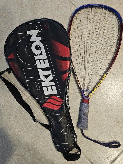 This is a nice racquet, it does need to be re-strung as strings are broken. Usually can have done for about $15 to $20. This racquet new was about $80, so it is worth stringing. Also has a pouch on side to carry, eye guards, gloves and balls. Will provide balls to you. Will except trades for: gift cards or other. Thanks for looking. Good luck