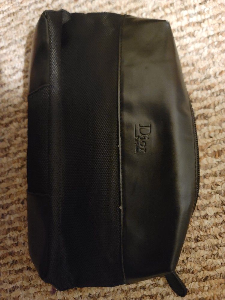 Elevate your style with this sophisticated Christian Dior makeup bag. Crafted with elegance, it features a sleek black design and the iconic ‘Dior’ logo embossed on the front, showcasing the luxury brand’s attention to detail. The bag’s compact design is perfect for organizing your essential makeup items, while its spacious interior ensures you have everything you need for on-the-go touch-ups. The textured surface adds a touch of glamour, making it not just a makeup bag but a statement accessory.